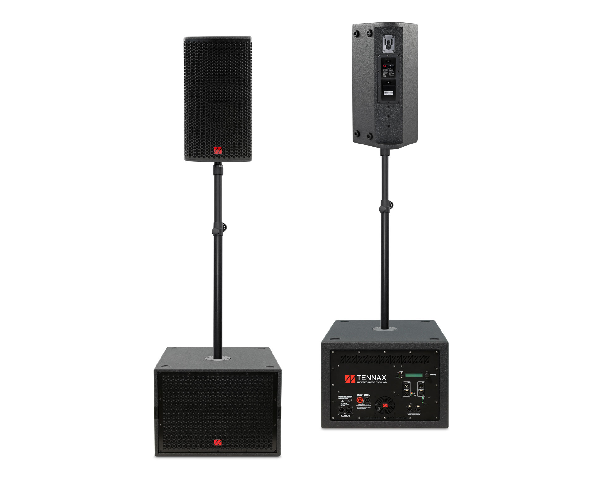 A free remote software gives the user access to additional presets and DSP features. Individual sound settings and room corrections can be stored in the internal DSP. A total of 80 presets and extensive filter functions including delay are available. If several active systems are to be combined and controlled, they can work together in a network and daisy-chains can be connected via Ethernet cable. For this purpose, the DSP has two network sockets with built-in switch. With the TENNAX self-powered systems, the technical professional has extensive possibilities. The normal user does not have to worry about the technology, just connect, start and have fun.
