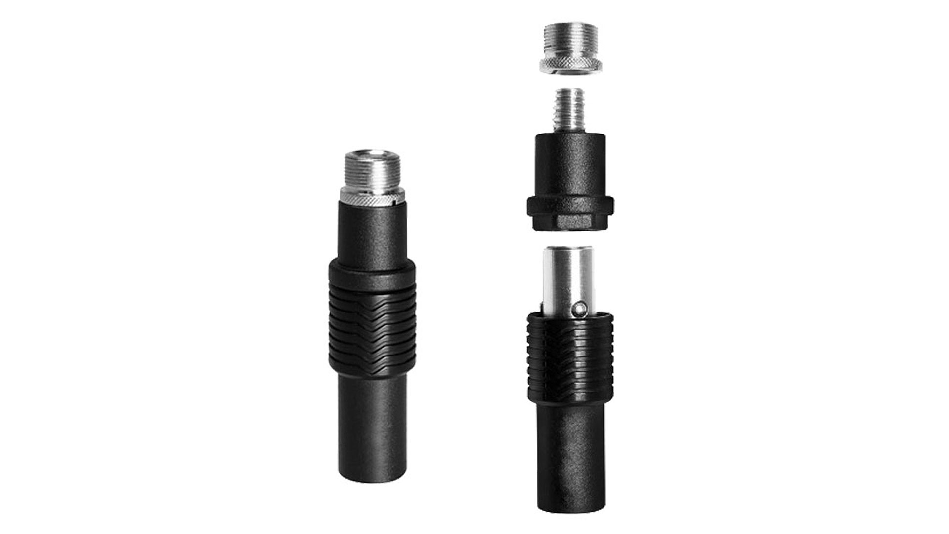 Schnellkupplung für den mühelosen Wechsel des Centri-5 mit U-Bügel. Der Nut- und Federmechanismus mit Sechskantflansch sorgt für eine feste Verbindung und kontrolliertes Ausrichtung des Centri-5 auf dem Lautsprecherstativ.