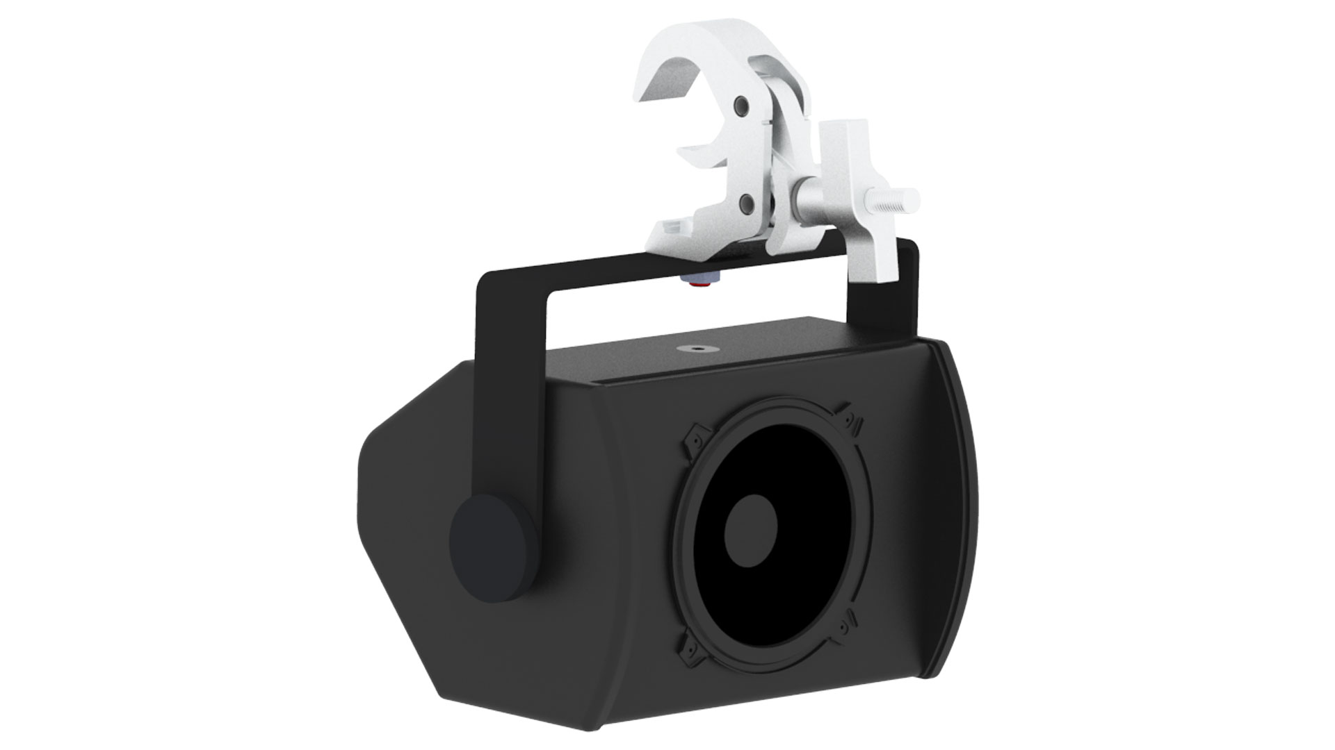 Lautsprecher können mit der selbsthaltende Traversen-Schelle von einer Person geflogen werden. Die Schelle hakt gleich an der Traverse ein und lässt sich bequem festziehen. Tragkraft 250 kg.