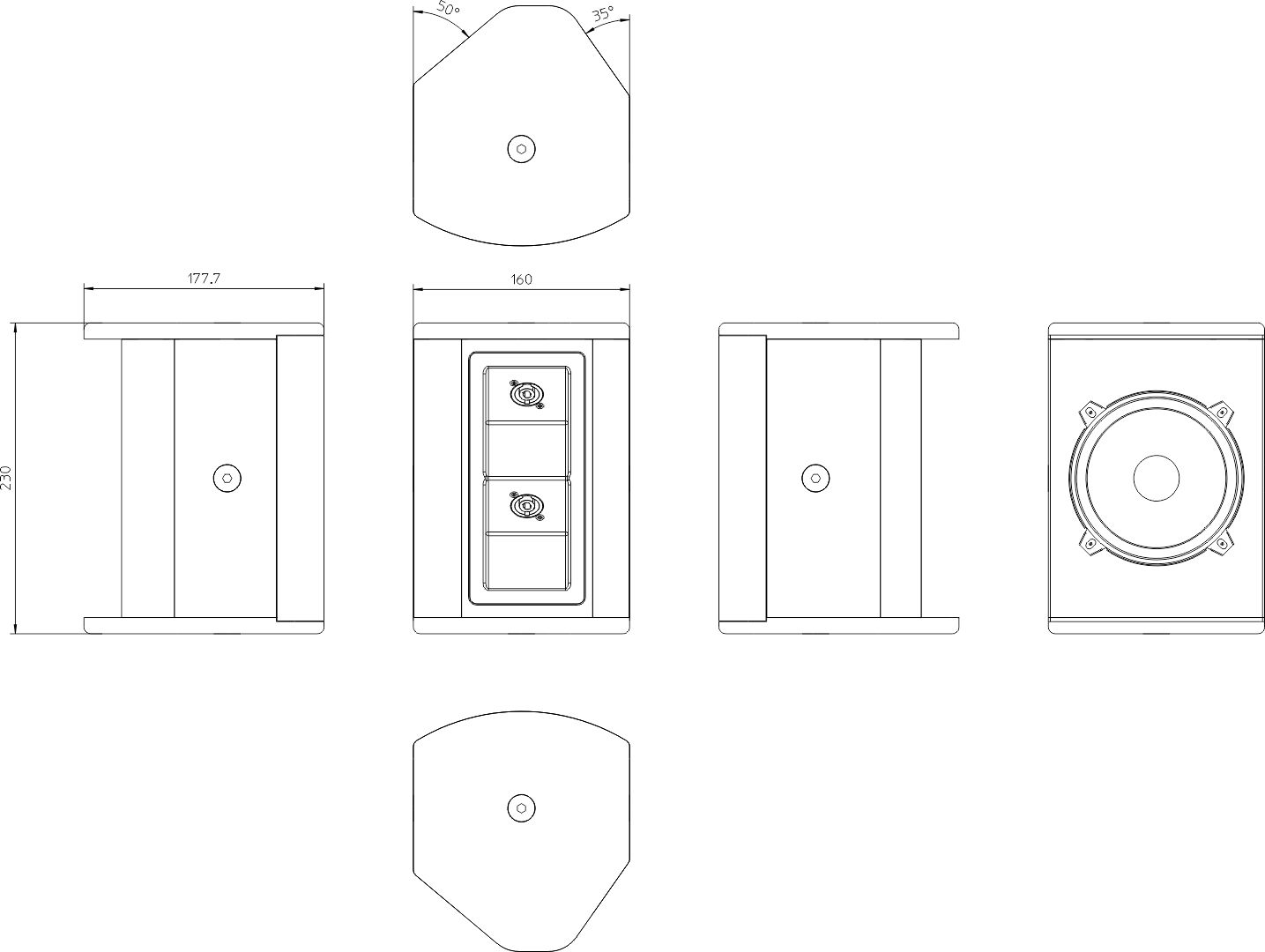 Mit den beiden Monitorschrägen von 50° und 35° bietet sich die Centri-5 als universales und äußerst dezentes Beschallungswerkzeug für mobile Einsätze und in Installationen an. Das formschöne Gehäusedesign fügt sie sich elegant und unauffällig in jede Umgebung ein.