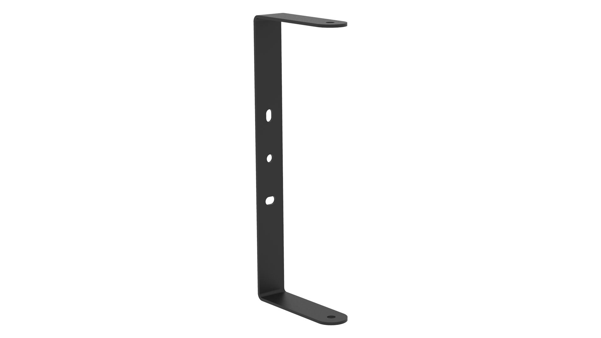 Wandhalter mit neig- und schwenkbarer Ausrichtung: 180° horizontal, 30° vertikal. Durch den verlängerten Ausleger kann der Lautsprecher seitlich parallel zur Wand geschwenkt werden. Max. Belastbarkeit: 25 kg.