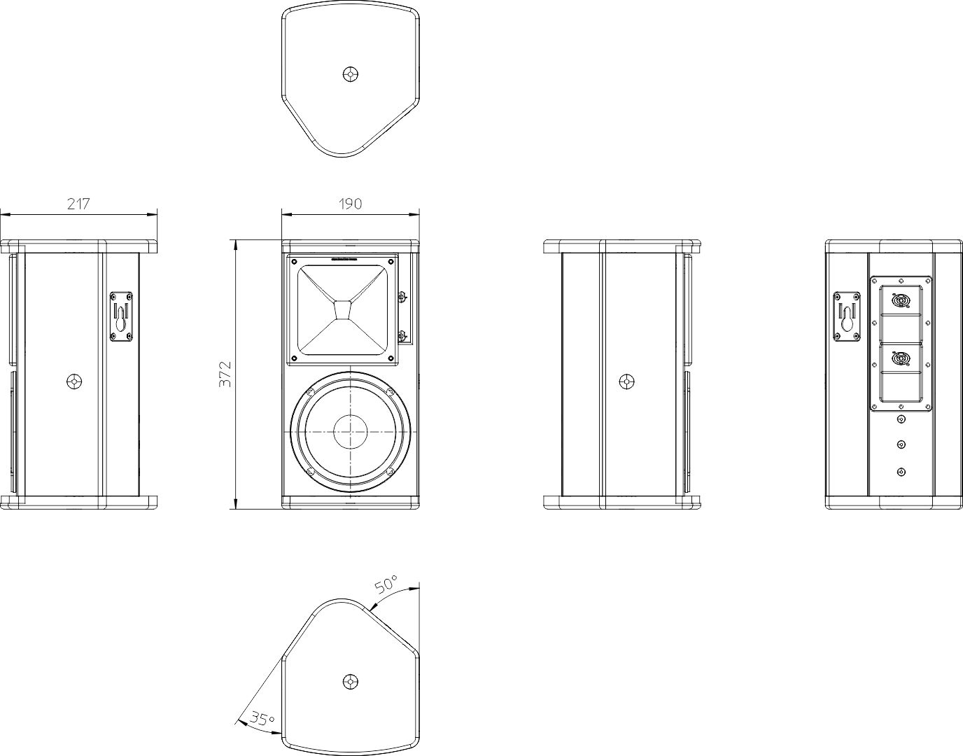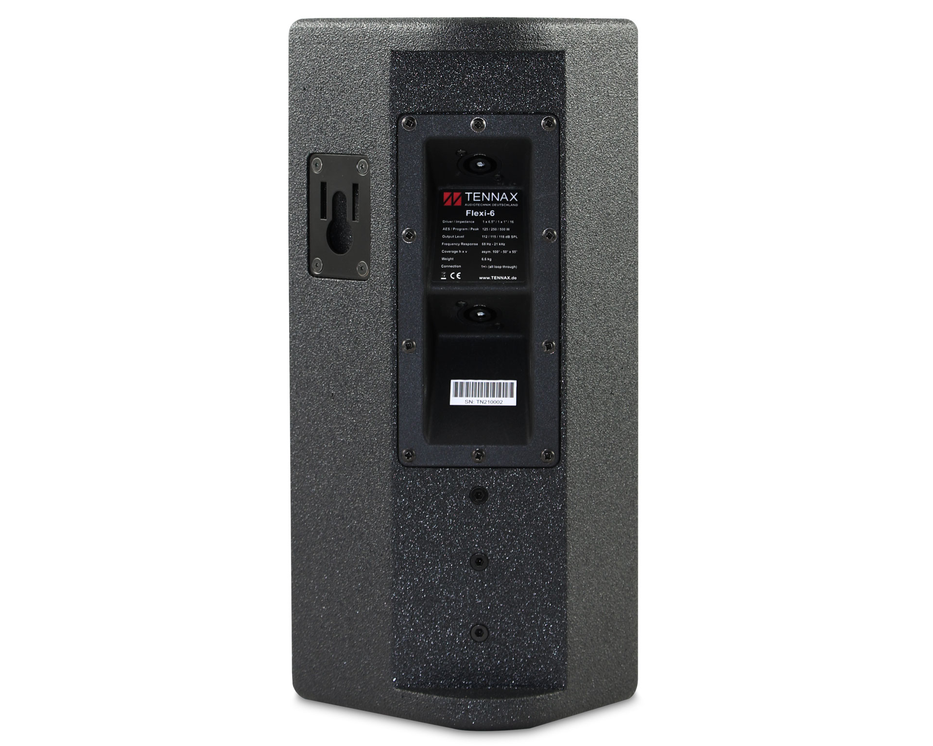 Als Besonderheit verfügen alle Flexi Lautsprecher über ein asymmetrisches, drehbares Hochtonhorn mit einer um 5° nach unten geneigten Abstrahlachse. Im Nahbereich strahlt das Horn horizontal mit 100° besonders breit ab und auf Entfernung schmälert sich der Winkel auf 50° ein. Die Energieverteilung auf der Zuhörerfläche ist gleichmäßiger. Durch die horizontale Einschnürung auf 50° wird die Schallenergie auf Distanz gebündelt. Diese Bündelung und die um 5° nach unten geneigte Abstrahlachse verbessert zudem die Übertragungsqualität, weil der Zuhörer mit mehr Direktschallanteil erreicht wird und ungewollter Diffusschall durch Raumreflektionen verringert wird.
