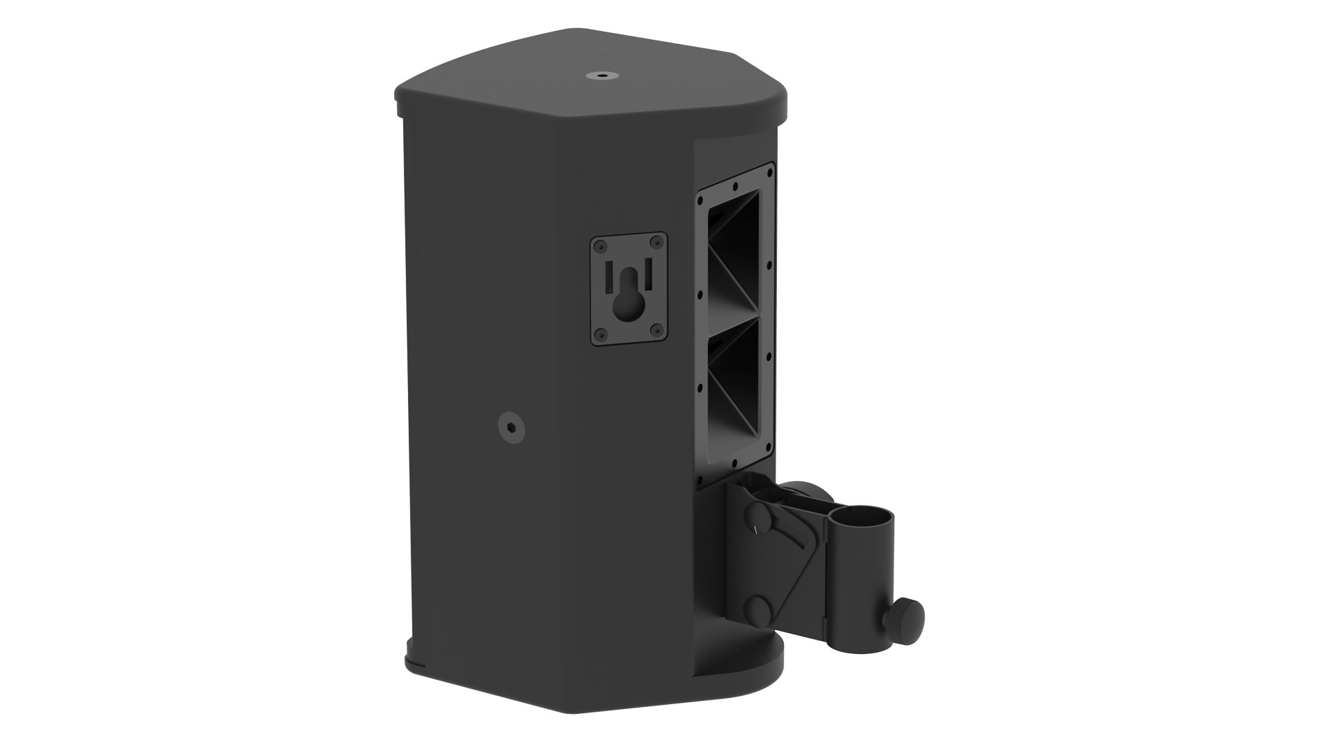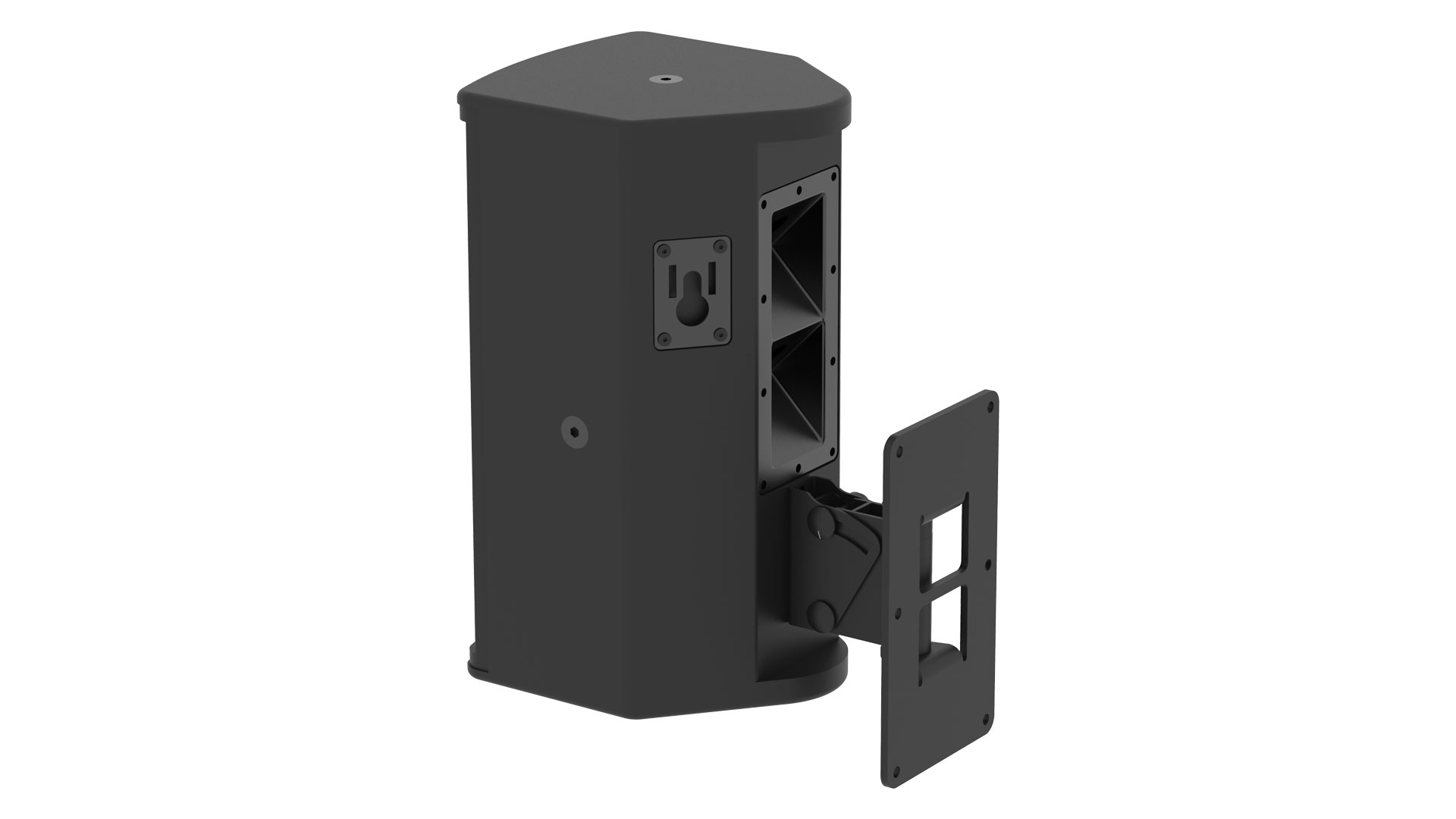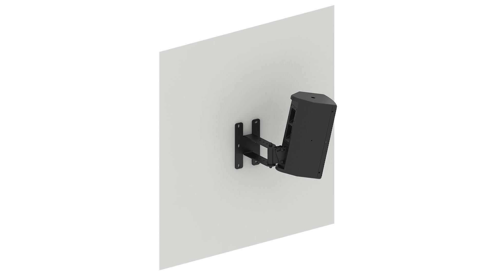 Wandhalter mit neig- und schwenkbare Ausrichtung: 145° horizontal, 30° vertikal. Die Neigung kann in 6 Stufen fixiert werden. Der Abstand zur Wand ist in 3 Stufen wählbar. Mit Aufnahme für Hochständerflansch. Halterung wird nahezu komplett vom Lautsprecher verdeckt. Max. Belastbarkeit: 25 kg.