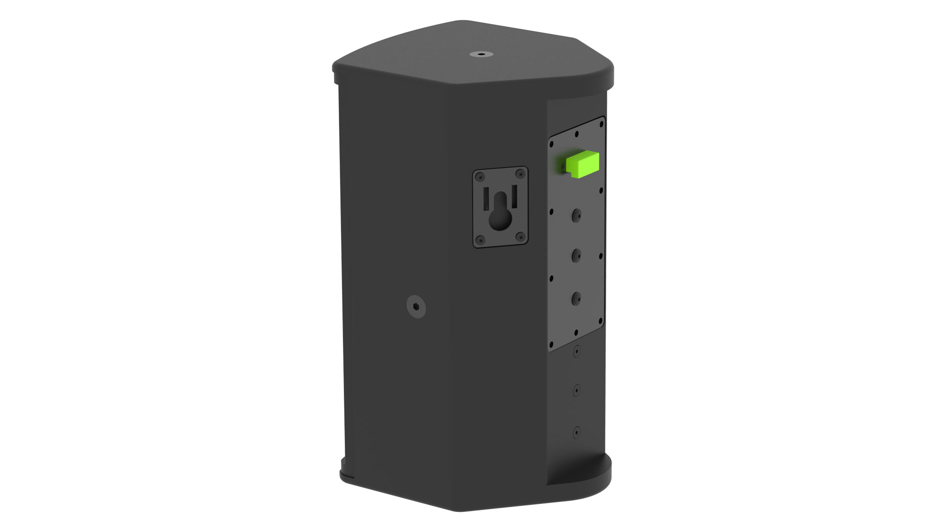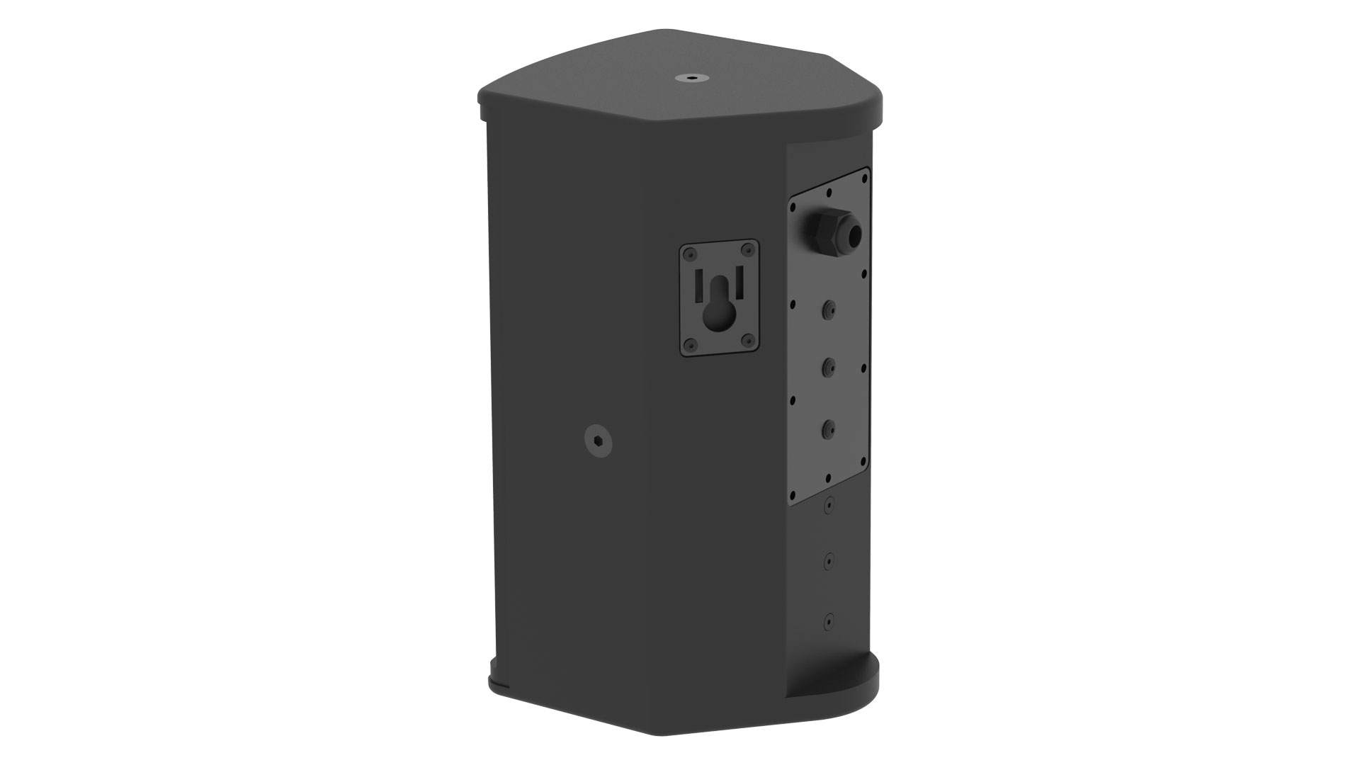 Das abgewinkelte Speakonanschlussfeld kann z.B. für Installationszwecke im Aussenbereich gegen eine Anschlussplatte mit wasserfester PG-Kabelverschraubung getauscht werden.